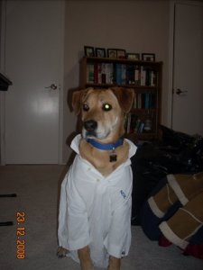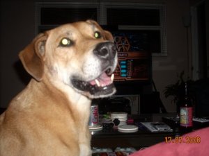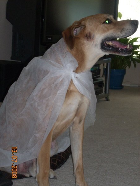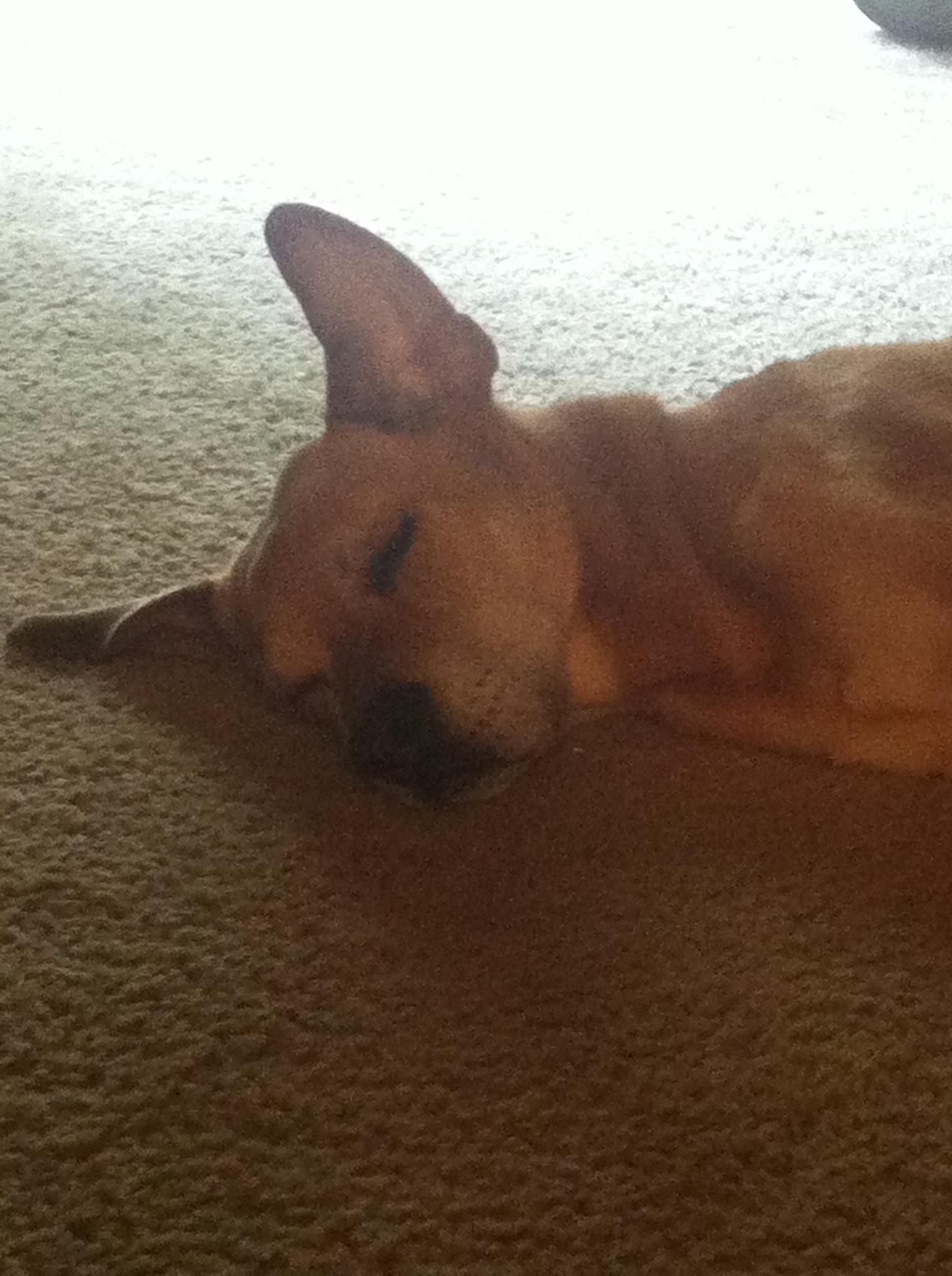 Thursday night was a rough night for everyone. Bogey hated his Elizabethan collar, which everyone knows as ‘the cone of shame.’ He freaked out and started running in to things trying to rip the collar off. I hated seeing him panic, so I took it off of him. Then he started throwing up, which, if I had just recovered from bleeding ulcers, and then had surgery and then freaked out, would probably throw up, too. Brett stayed up with him until about 3:30 a.m. That’s when Bogey finally decided to lay down and go to sleep. On Friday, he seemed okay. Great! Our Dude just hated his collar and basically threw the equivalent of a screaming, kicking, crying-until-you-throw-up tantrum. He didn’t really eat much Friday, so I made him some chicken (I told you, he’s spoiled). He chowed it down and everything seemed good. Friday night, more vomiting. But, not as bad as Thursday night. So, maybe the food upset his stomach. He probably ate too fast. But, his breathing seemed off, and his behavior was off too. But he did just have surgery 24 hours ago and now has stitches in his hiney….