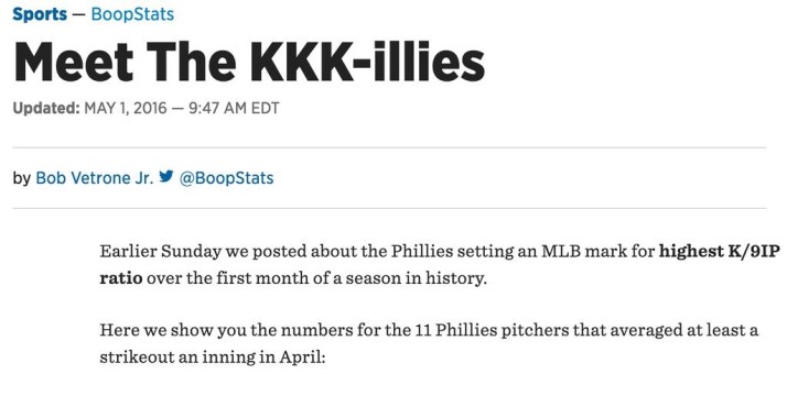 And, finally, this headline about the Philadelphia Phillies pitchers striking out batters.